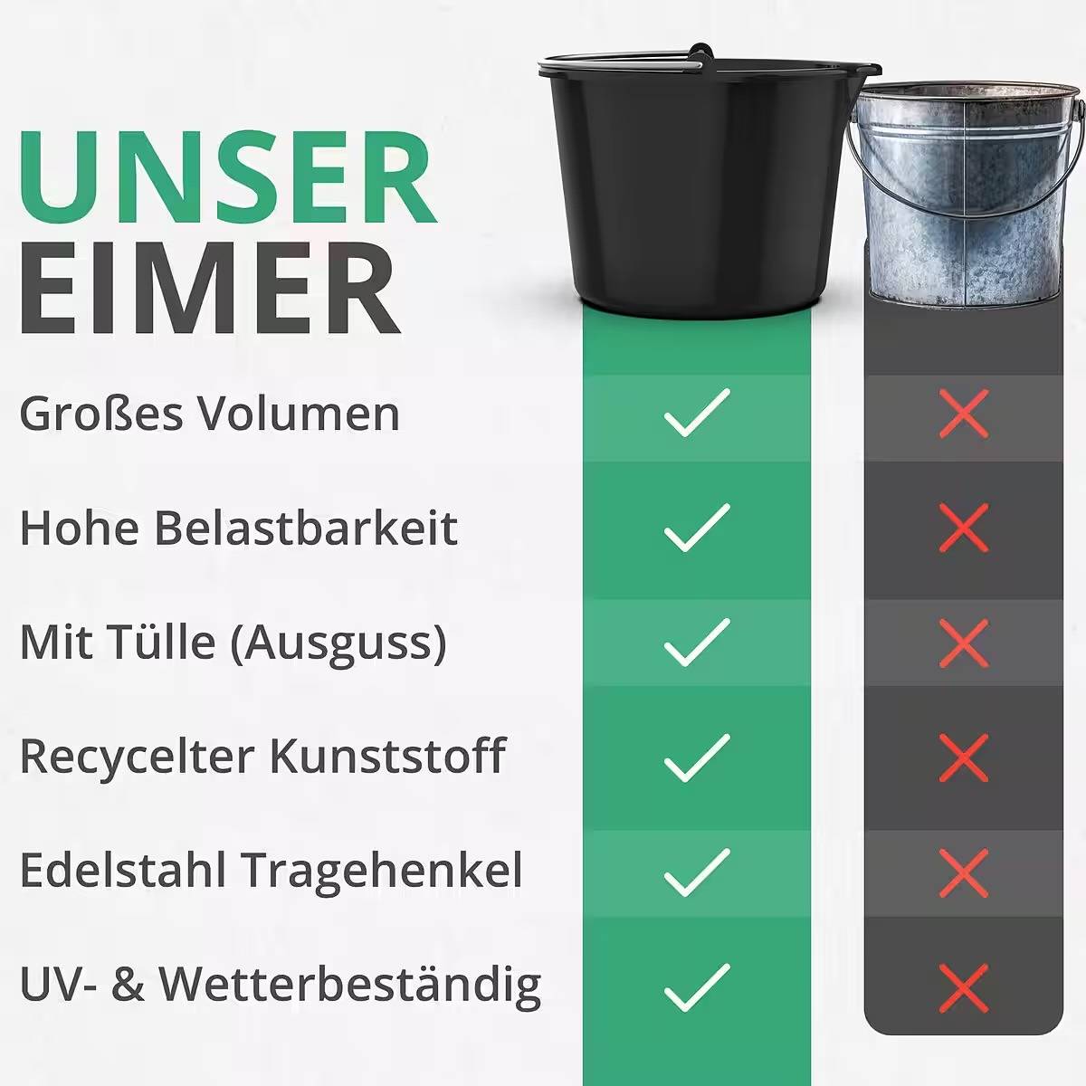 - Stabil langlebig robustem – Eimer mit hoher Belastbarkeit ist genau so stabil wie eine Mörtelwanne oder ein Mörtelkübel, den man von professionellen Baustellen kennt
