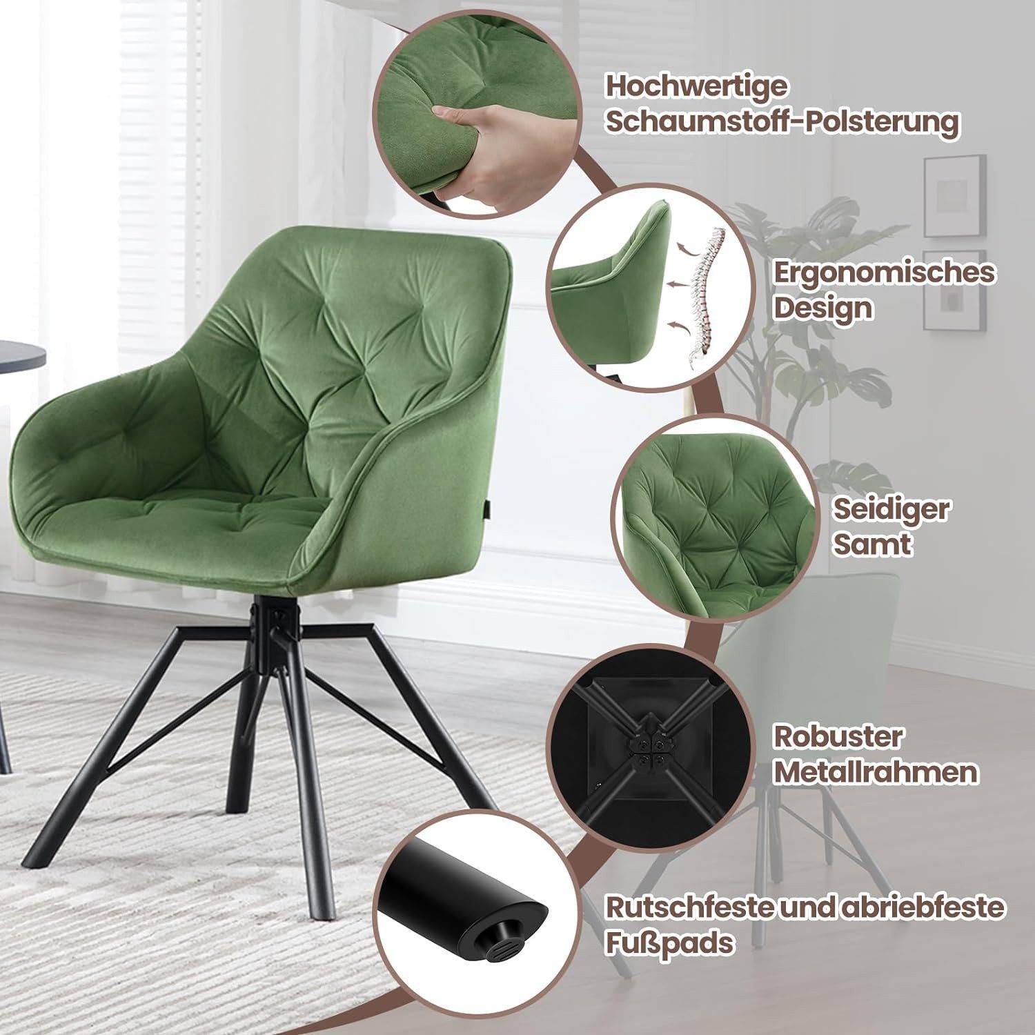 • Der drehbare Armlehnstuhl ist geräumig, bequem und vielseitig einsetzbar: als Küchenstuhl, Wohnzimmerstuhl, Schminktischstuhl, Home-Office-Stuhl, Schlafzimmerstuhl, Lesestuhl usw.