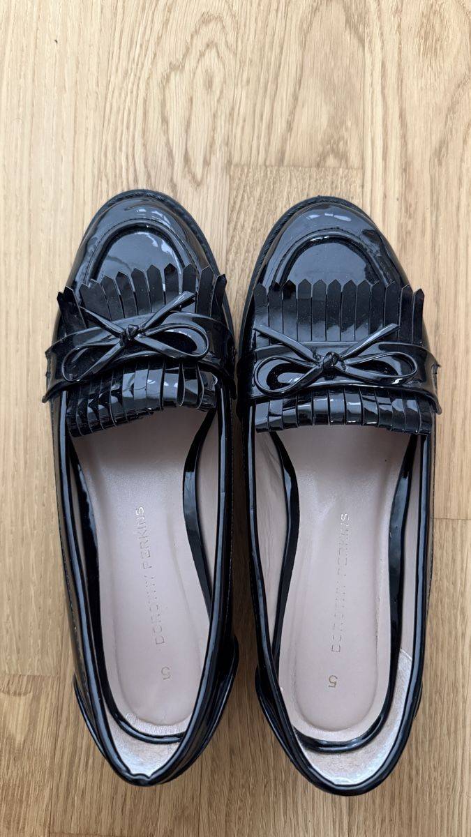Schicke, schwarze Halbschuhe von Dorothy Perkins, Grösse 38. Diese bequemen Damenschuhe sind ein echter Hingucker. Ob im Büro oder in der Freizeit, sie passen zu jedem Outfit.