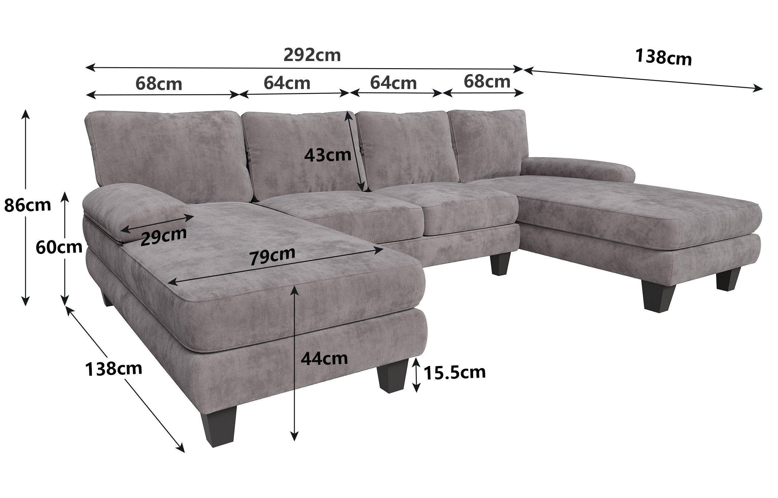 Ecksofa Großes U-förmiges Sofas hoch belastbar mit 4 Kissen 292cm*138cm*86cm Schnelle Montage von großen Sofas in 20 Minuten