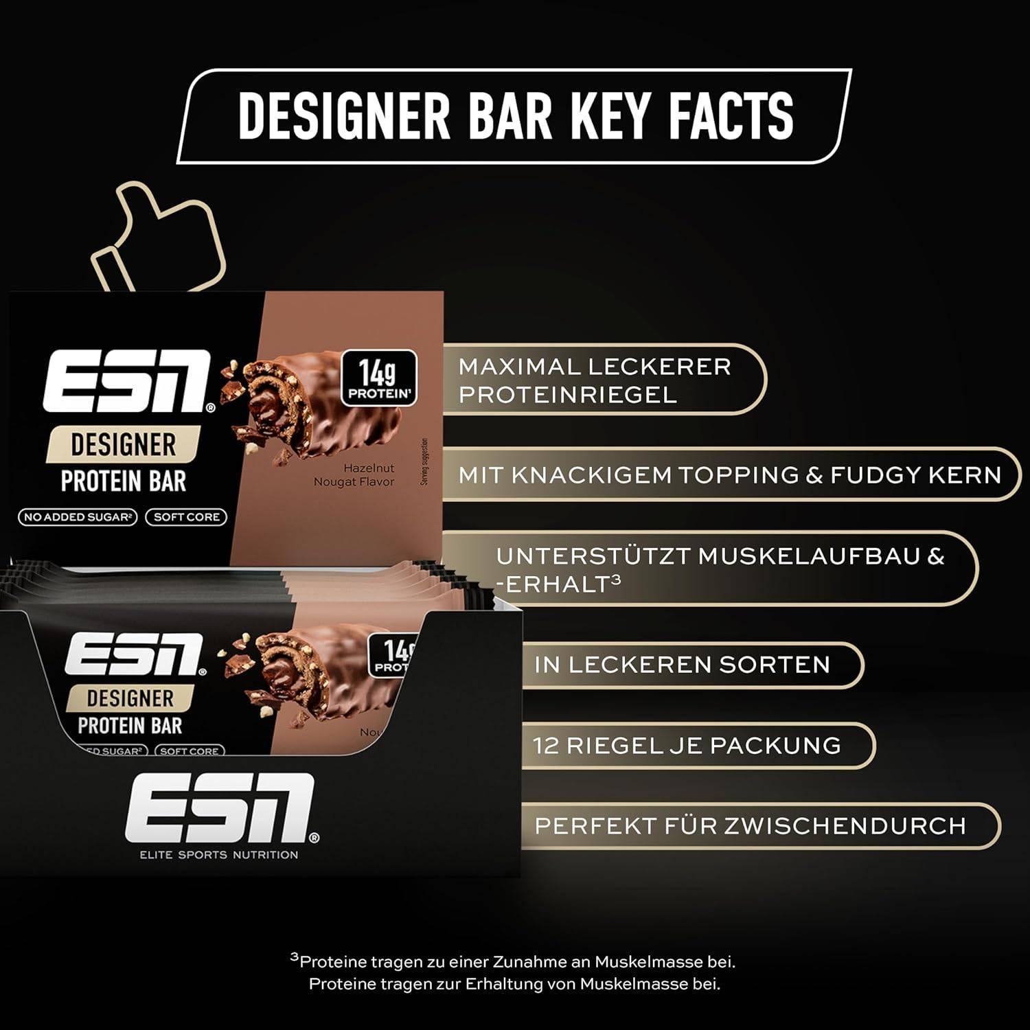 ESN Designer Bar Box, Hazelnut Nougat, 12 x 45 g, der ideale Snack mit bis zu 14 g Protein pro Riegel – made in Germany – Verschiedene Sorten 26,99