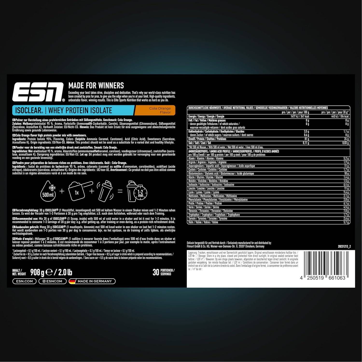 ESN ISOCLEAR Whey Isolate Protein Pulver, Cola Orange, 908 g, Clear Whey 34,99  Spare:18,00 (34%)