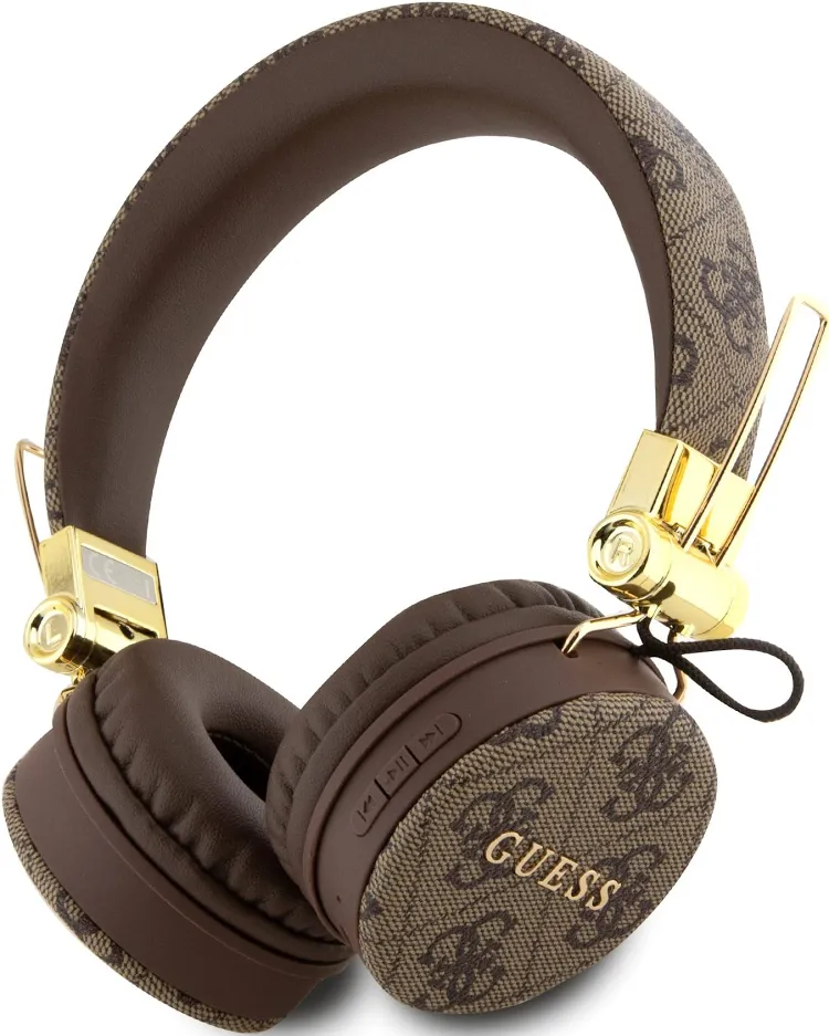 Guess Kabellose Kopfhörer, 4G, PU-Leder, mit Metall-Logo, Braun Neu