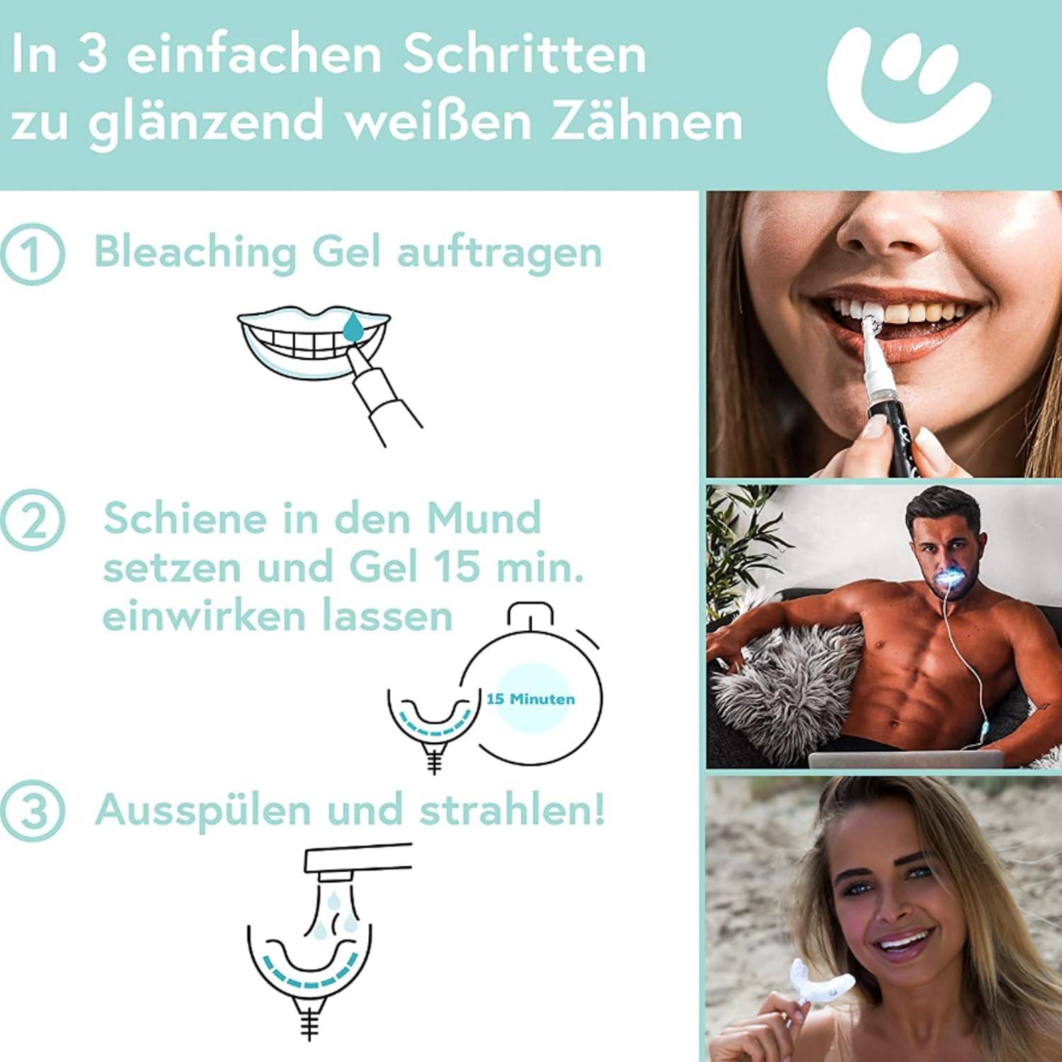 Hochwertiges Teeth whitening kit - Testsieger 2023-100 Tage risikofrei testen - All in One Bundle für Zahnaufhellung & weiße Zähne - Zahn Bleaching Set (Basic-Set)