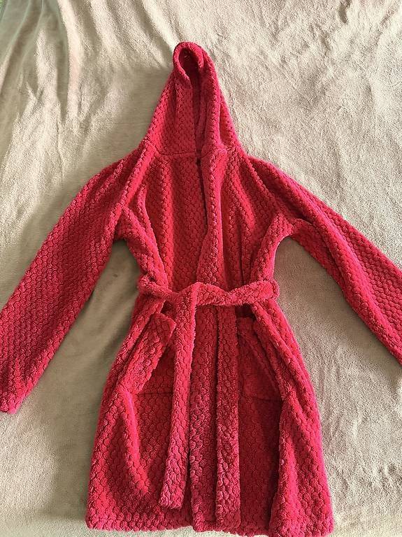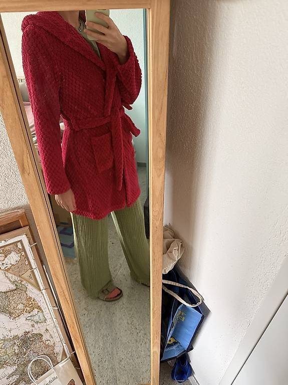 ein super kuscheliger Bademantel in Kirschrot Grösse S-M ca. Knielänge