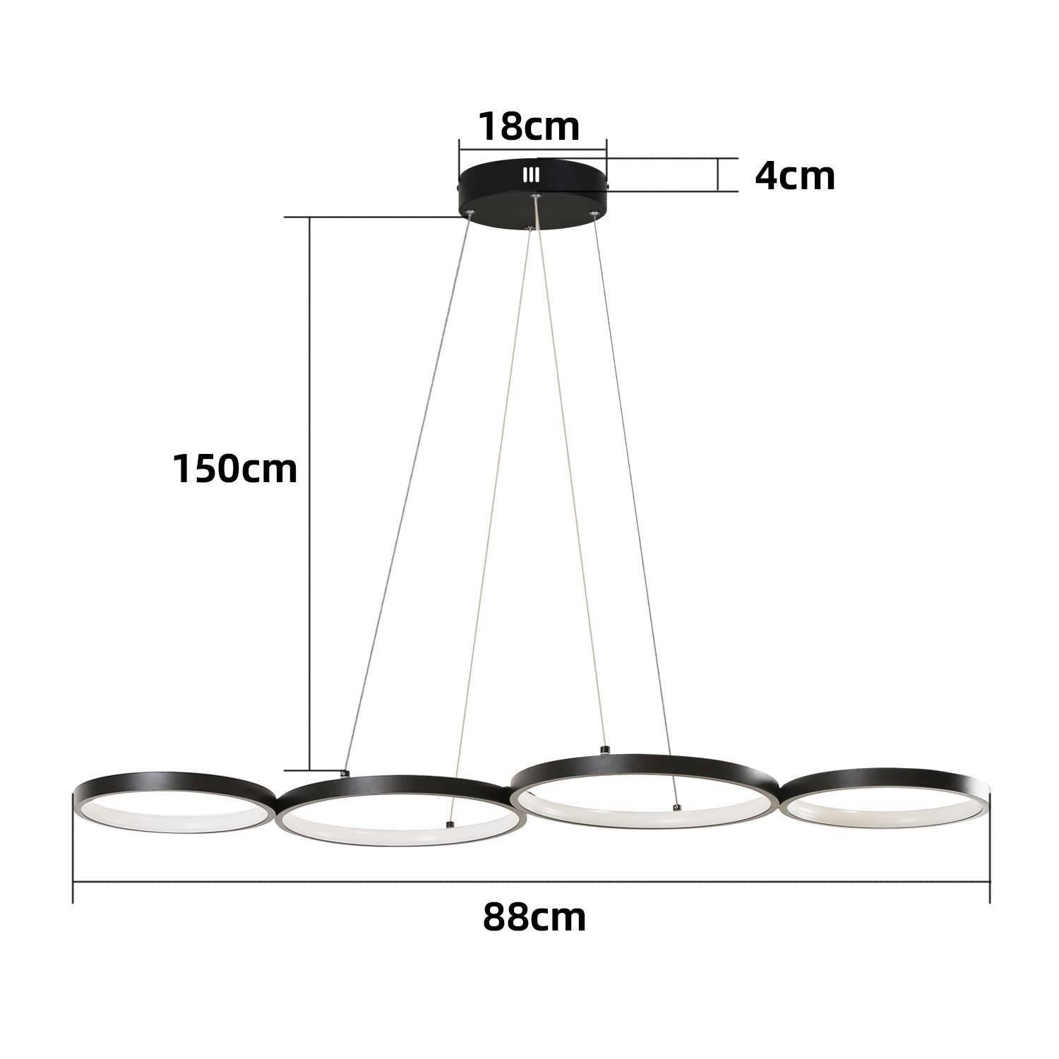 LED Pendelleuchte Wohnzimmer Modern 4 Flammig Hängelampe Dimmbar mit Fernbedienung Augenschutz, Einfache Installtion, LED fest integriert, warmweiß-kaltweiß, Dimmbar