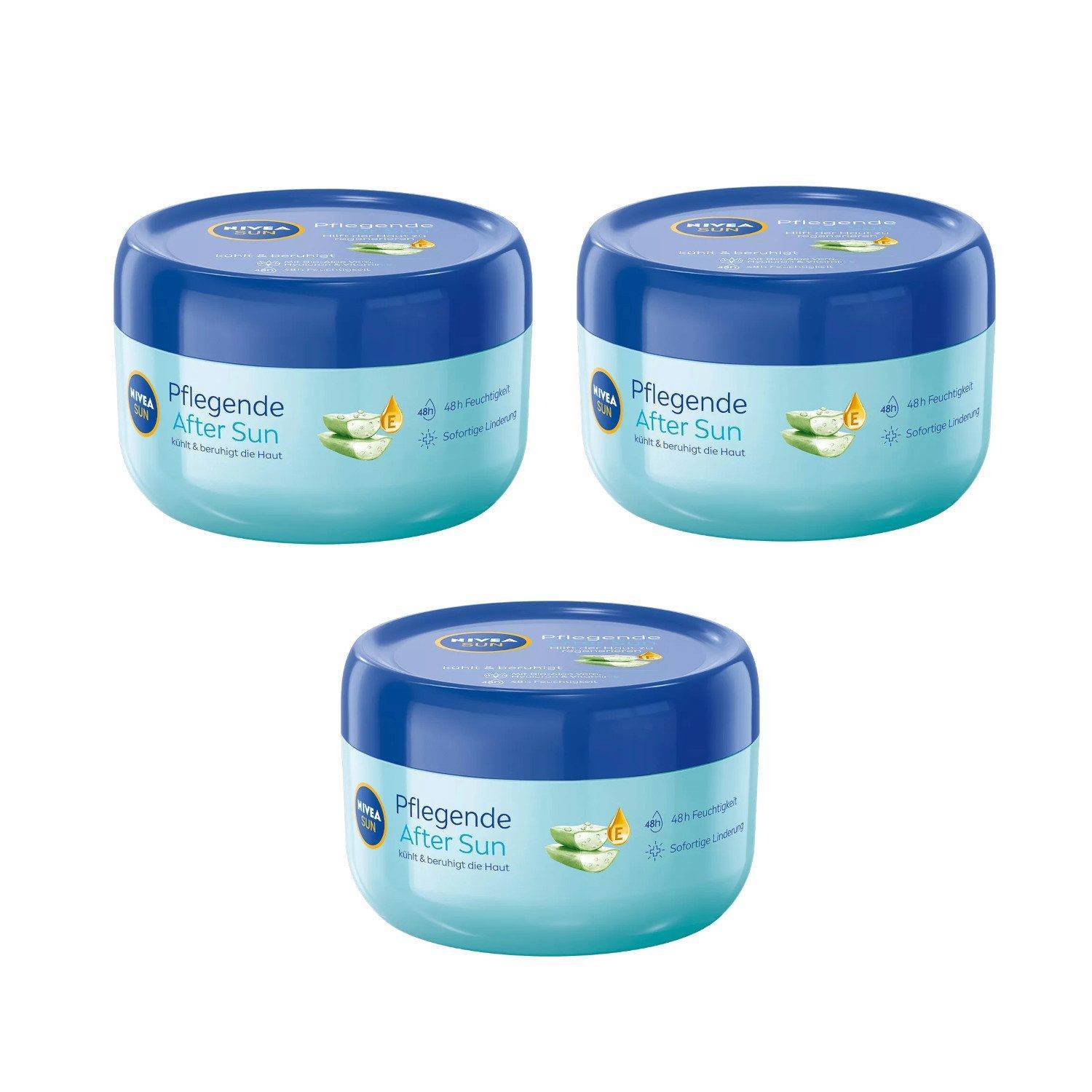 NIVEA After Sun-Balsam SUN After Sun Tiegel mit Bio Aloe Vera Hyaluron Vitamin E 3 x 300ml 3-tlg., Spendet 48 Stunden lang Feuchtigkeit 24,89