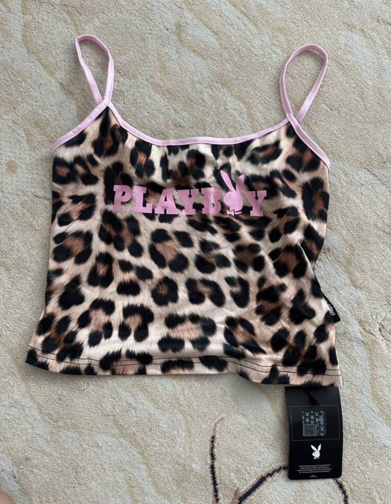 Playboy Trägertop XS – Leopardenprint mit rosa Saum 15,00