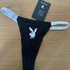 Ich verkaufe einen neuen Playboy Vintage Bikini-Slip mit hohem Beinausschnitt und klassischem Häschen-Muster. Der Slip ist aus einer angenehmen Baumwollmischung gefertigt und hat ein kontrastweißes Elastikband mit Logo.
