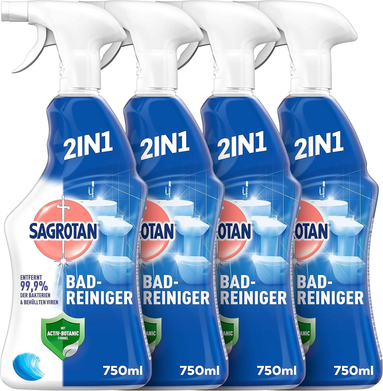 - Durch den vielfältigen Anwendungsbereich im ganzen Bad entfernt der Reiniger 99,9 Prozent der Bakterien dort, wo es wichtig ist – auf WC, Waschbecken, Badewannen und Duschwänden sowie Armaturen