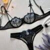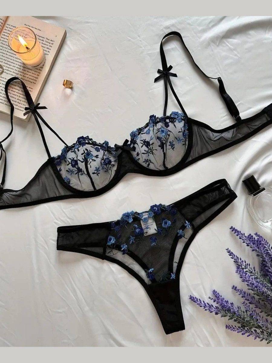 Set: Push-up-BH Sexy Dessous-Set, Bestickter BH+Tanga, Reizwäsche