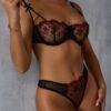 Set: Push-up-BH Sexy Dessous-Set, Bestickter BH+Tanga, Reizwäsche