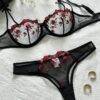 Set: Push-up-BH Sexy Dessous-Set, Bestickter BH+Tanga, Reizwäsche